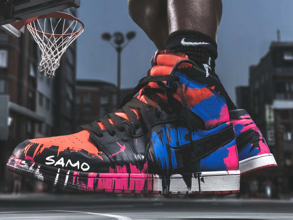 Proposta se resume na criação de um produto com a assinatura do artista Norte Americano Jean Michael Basquiat. Trazer a essência do artista visual nos produtos da marca com um tênis com a assinatura única SAMO© retrata a alma do artista com suas peças.