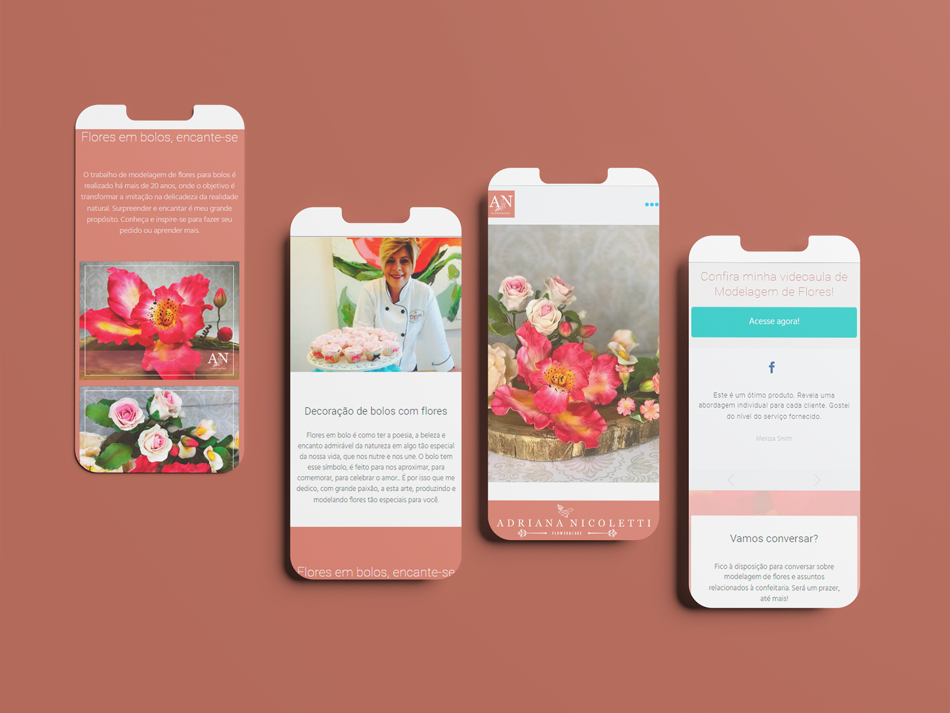 O objetivo era um redesign da marca com foco na modelagem de flores para decoração de bolos. Adriana desejava um posicionamento como especialista e que ressaltasse a sofisticação e o carinho de seu trabalho.