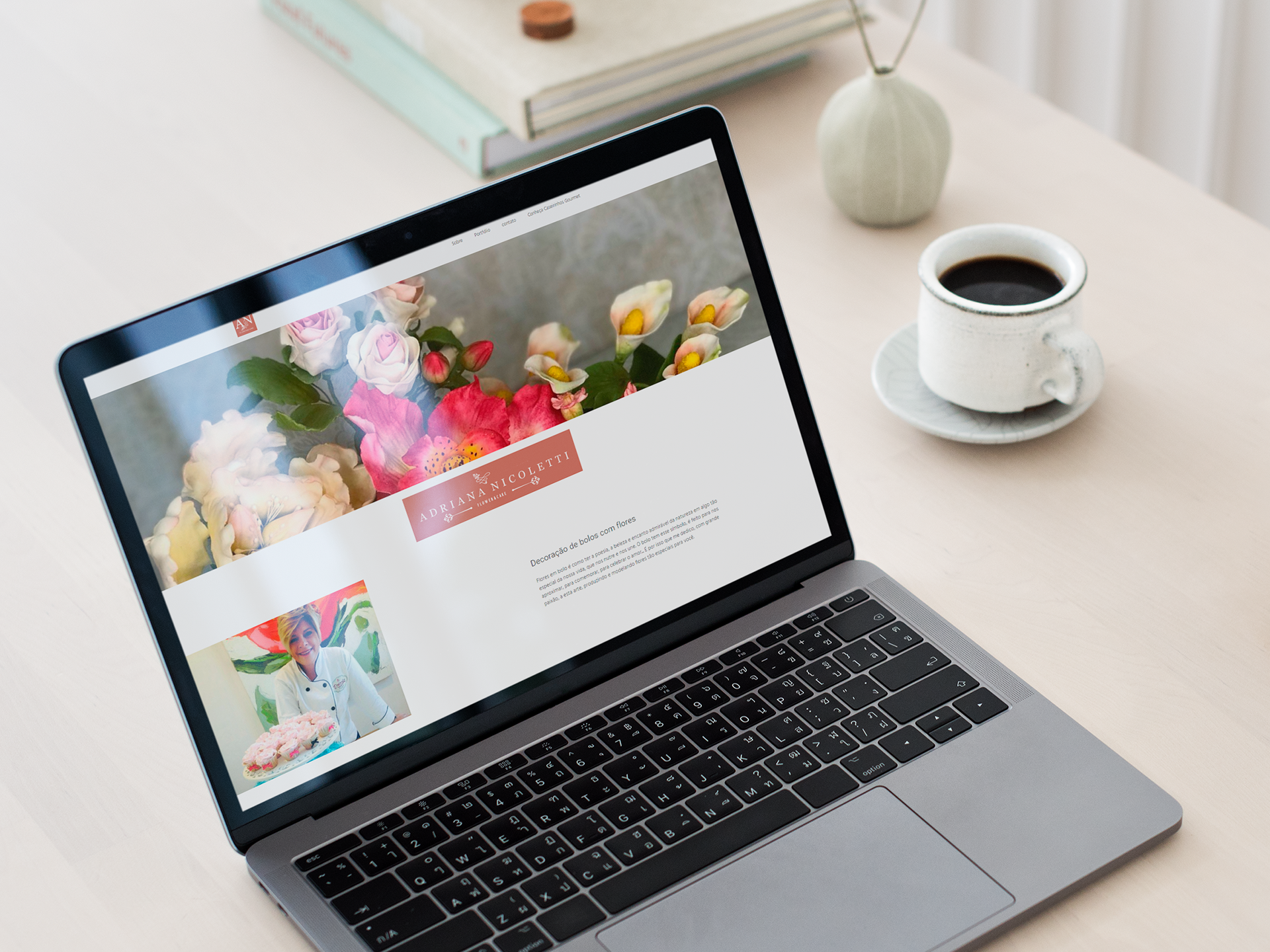 Após descobrir uma aptidão nata para confeccionar bolos decorativos, investiu em sua formação profissional e resgatou a paixão antiga de modelar flores. Foi a partir daí que Adriana me procurou para criar a nova identidade da "Drica Cakes".