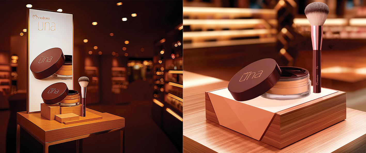 Estudo de caso para o produto Natura Una, criando material de imagens de divulgação no ponto de venda. Desde a criação de posters para divulgação em loja a um estudo de expositor de produtos.
